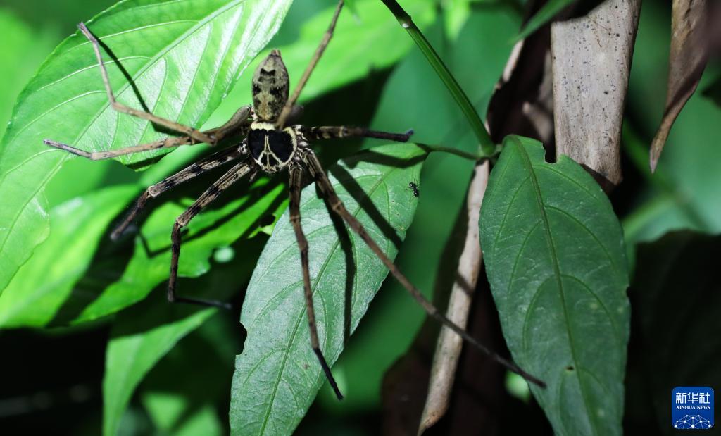 這是在海南熱帶雨林國家公園吊羅山片區拍攝的白額高腳蛛(6月14日攝)。