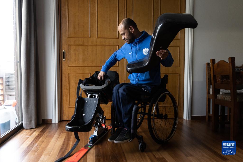 3月7日,喬治·斯法爾托斯在希臘雅典的家中安裝獲贈的定制坐姿滑雪器。