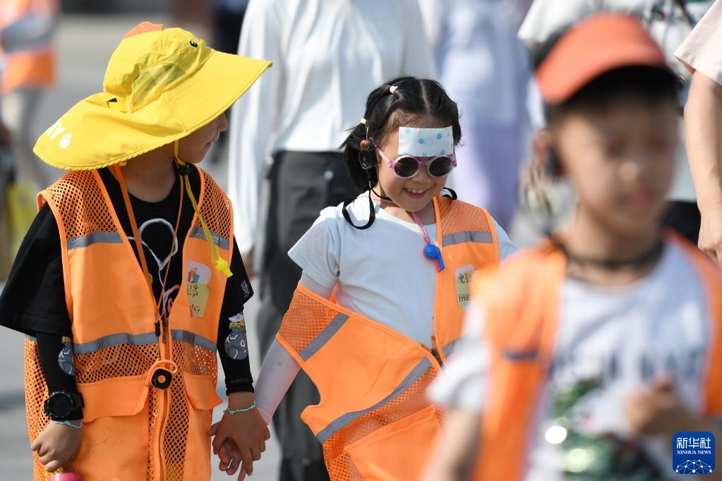 6月23日,幾個(gè)小朋友在北京天壇公園參觀(guān)。