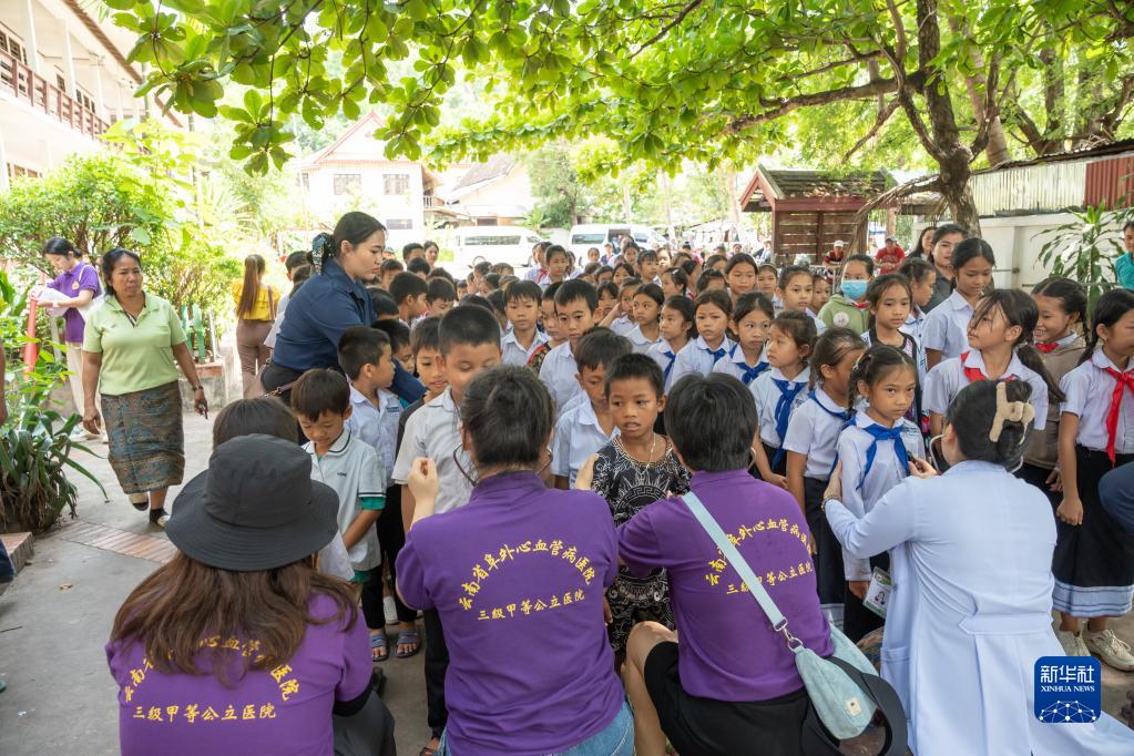 6月17日,在老撾北部瑯勃拉邦,中國醫療組對當地兒童進(jìn)行先心病免費篩查。