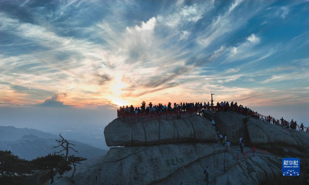 6月23日,游客在華山西峰觀(guān)賞落日(無(wú)人機照片)。