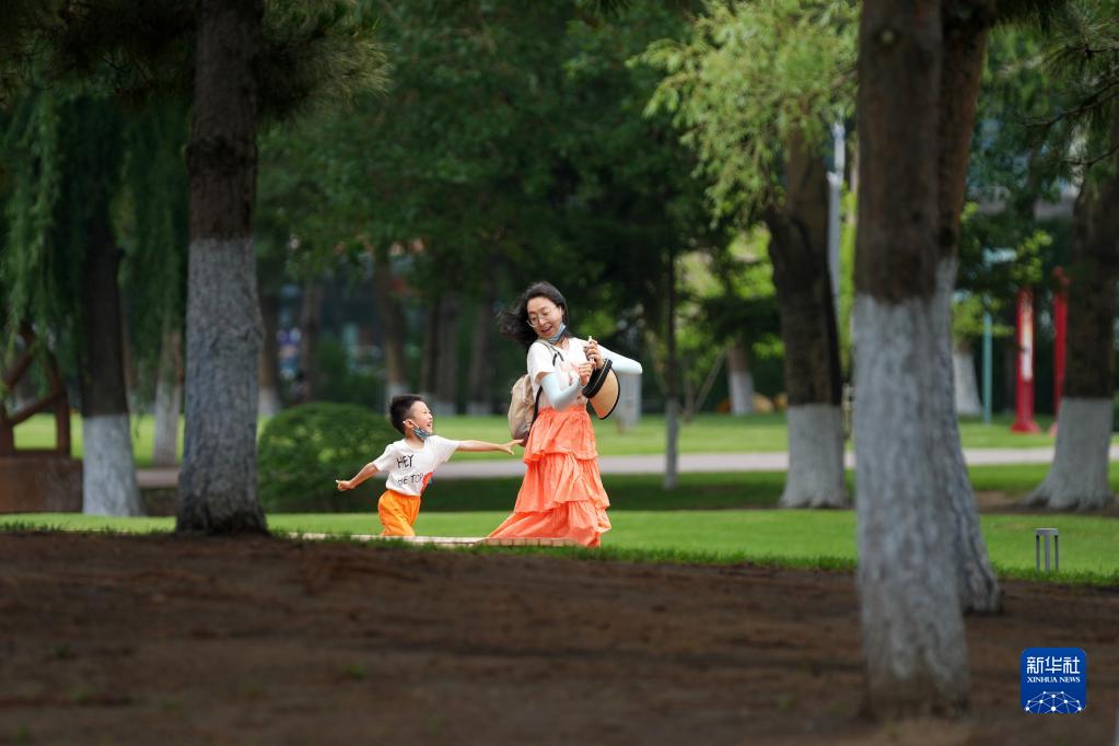 6月24日,市民在黑龍江省哈爾濱市湘江公園游玩。