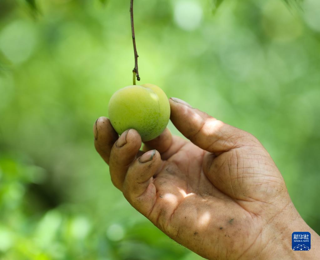 6月24日,夏國剛在貴州省開(kāi)陽(yáng)縣龍水鄉龍溪村烏江河畔的果園里采摘蜂糖李。