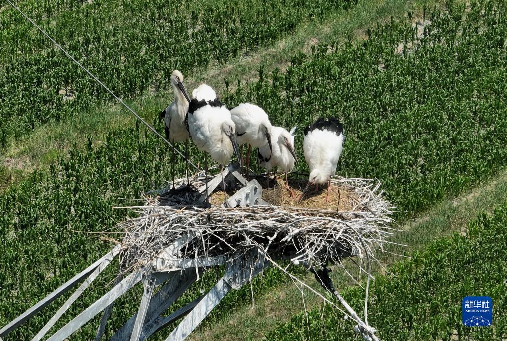 近日,在河北省唐山市豐南區黑沿子鎮沿海濕地附近的高壓電線(xiàn)鐵塔上的巢穴中,新孵化出的近30只東方白鸛幼鳥(niǎo)羽翼漸豐,它們在成年?yáng)|方白鸛的看護下茁壯成長(cháng)。據介紹,隨著(zhù)當地政府不斷加大環(huán)境治理和生態(tài)功能修復力度,東方白鸛的棲息地從最初的黑沿子鎮逐步向周邊擴大,轄區內沿海濕地也成為國家一級保護動(dòng)物東方白鸛的重要棲息地。