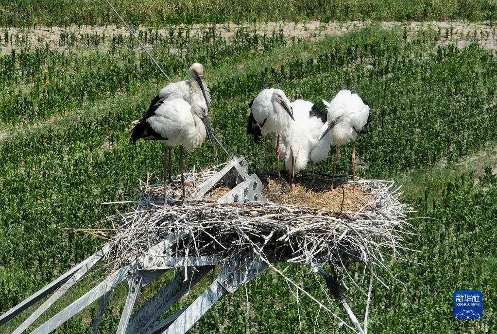 近日,在河北省唐山市豐南區黑沿子鎮沿海濕地附近的高壓電線(xiàn)鐵塔上的巢穴中,新孵化出的近30只東方白鸛幼鳥(niǎo)羽翼漸豐,它們在成年?yáng)|方白鸛的看護下茁壯成長(cháng)。據介紹,隨著(zhù)當地政府不斷加大環(huán)境治理和生態(tài)功能修復力度,東方白鸛的棲息地從最初的黑沿子鎮逐步向周邊擴大,轄區內沿海濕地也成為國家一級保護動(dòng)物東方白鸛的重要棲息地。
