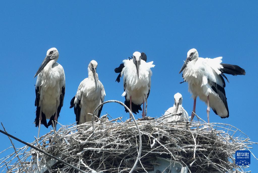 近日,在河北省唐山市豐南區黑沿子鎮沿海濕地附近的高壓電線(xiàn)鐵塔上的巢穴中,新孵化出的近30只東方白鸛幼鳥(niǎo)羽翼漸豐,它們在成年?yáng)|方白鸛的看護下茁壯成長(cháng)。據介紹,隨著(zhù)當地政府不斷加大環(huán)境治理和生態(tài)功能修復力度,東方白鸛的棲息地從最初的黑沿子鎮逐步向周邊擴大,轄區內沿海濕地也成為國家一級保護動(dòng)物東方白鸛的重要棲息地。