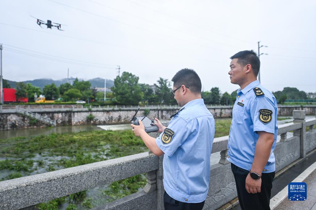 6月25日,杭州市生態(tài)環(huán)境局臨安分局的工作人員使用無(wú)人機進(jìn)行河道水質(zhì)快速巡查。