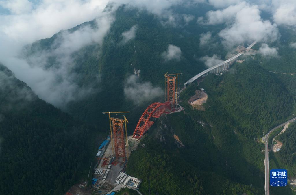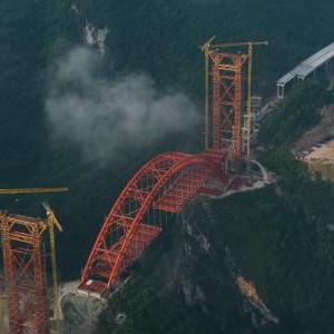 溇水河特大橋位于湖北省鶴峰縣境內,是宜(都)來(lái)(鳳)高速公路鶴峰東段的控制性工程。大橋全長(cháng)328米,橫跨深度300多米的峽谷。目前,橋梁建設者正在進(jìn)行鋼梁吊裝施工作業(yè),預計6月底完成吊裝施工。