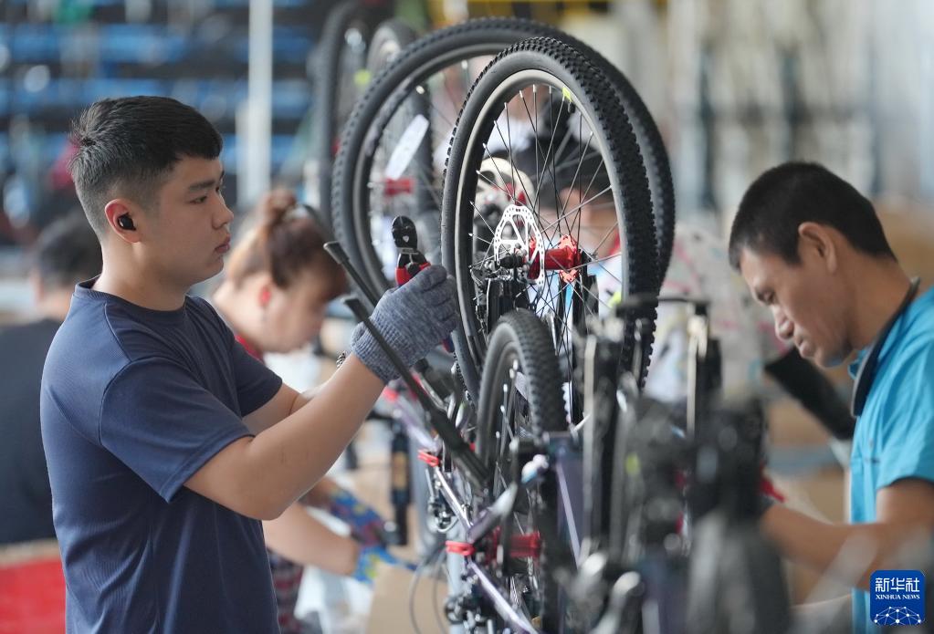 6月25日,工人在唐山市蘆臺經(jīng)濟開(kāi)發(fā)區一家自行車(chē)企業(yè)的生產(chǎn)車(chē)間工作。