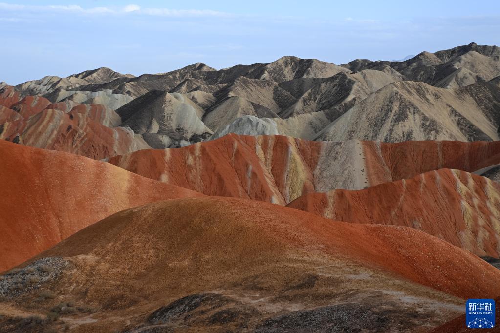 盛夏時(shí)節,甘肅省張掖市七彩丹霞景區在藍天白云的映襯下氣勢磅礴,色彩艷麗。