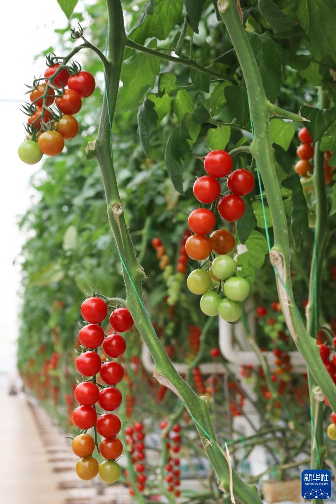 這是在張掖市民樂(lè )工業(yè)園內的一家農業(yè)公司拍攝的即將成熟的串收番茄(6月25日攝)。