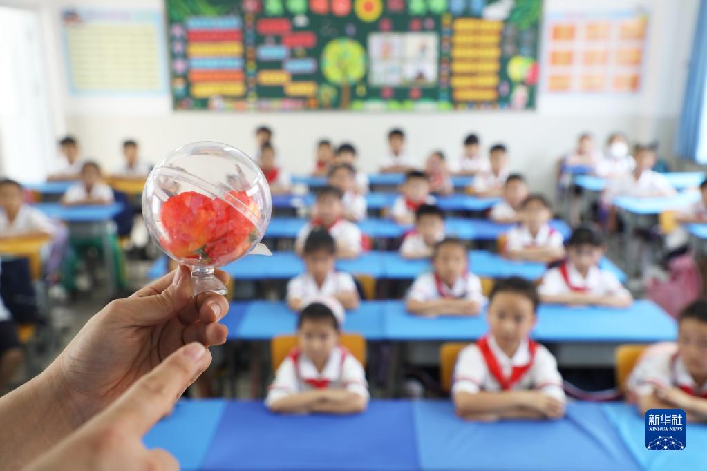 6月26日,在河北省唐山市豐潤區燕山路小學(xué),民警用仿真毒品樣本向學(xué)生講解毒品的危害。