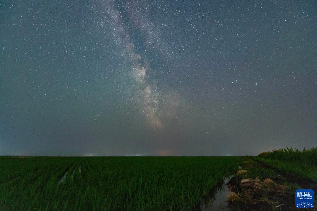 夏日夜晚,黑龍江省富錦市萬(wàn)畝水稻公園的稻田之上星空璀璨,美麗壯觀(guān)。