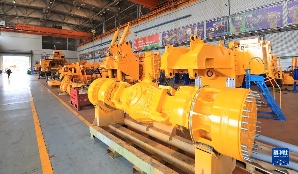這是6月26日在白俄羅斯明斯克州若基諾市拍攝的白俄羅斯汽車(chē)制造廠(chǎng)大型自卸車(chē)組裝車(chē)間。