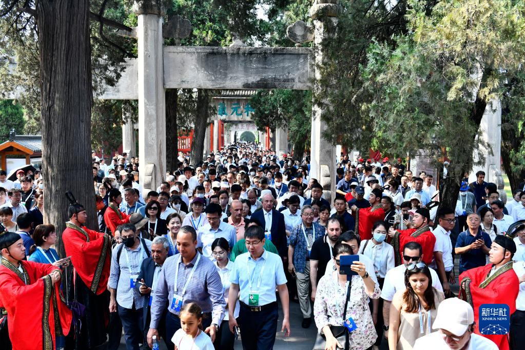 6月27日,嘉賓和游客來(lái)到曲阜孔廟參觀(guān)。
