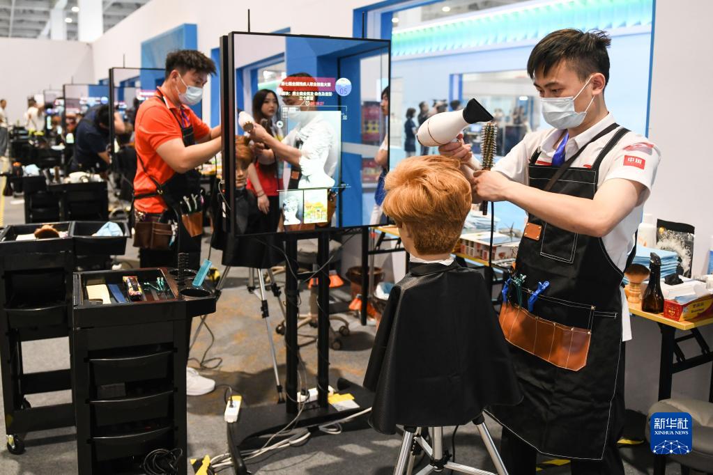 6月27日,參賽選手進(jìn)行美發(fā)項目比賽。