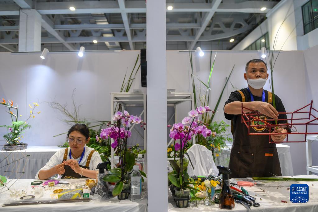6月27日,參賽選手進(jìn)行插花項目比賽。