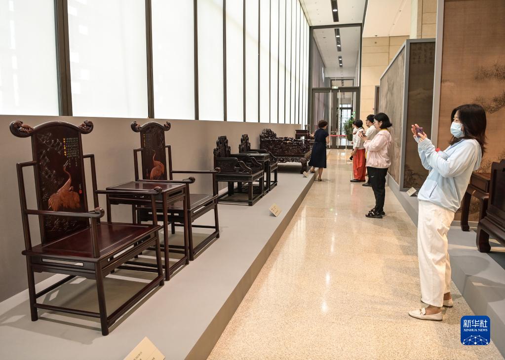 當日,“心·傳——陳玉樹(shù)新時(shí)代古典家具藝術(shù)展”在位于北京的中國工藝美術(shù)館、中國非物質(zhì)文化遺產(chǎn)館舉辦,展出了高級工藝美術(shù)師陳玉樹(shù)近年創(chuàng )作的20套古典家具,展現出中國木作技藝之美。