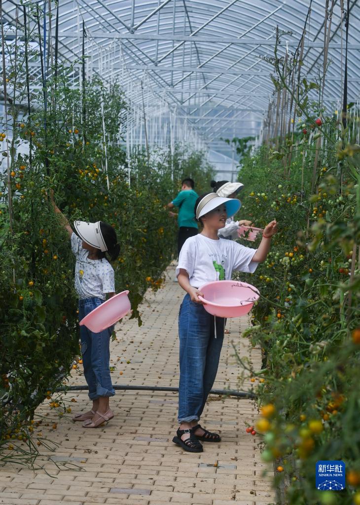 6月27日,游客在浙江省建德市航頭鎮航川村的采摘園里體驗采摘樂(lè )趣。