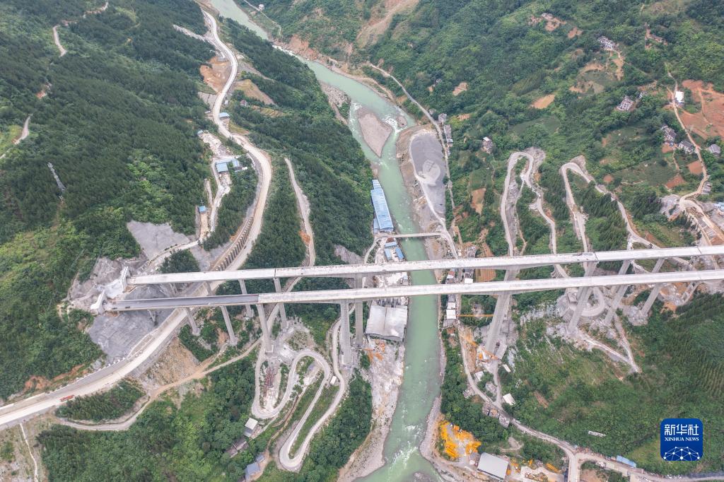 這是6月27日拍攝的巫鎮高速公路二標段西溪河特大橋施工現場(chǎng)(無(wú)人機照片)。
