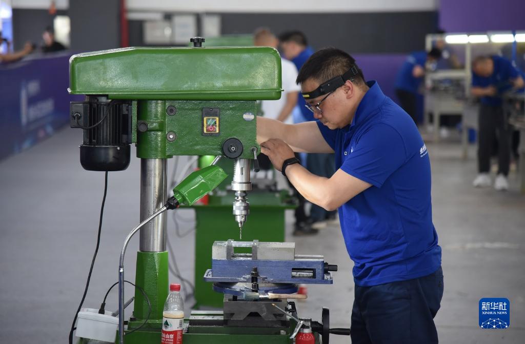 6月27日,參賽技術(shù)工人進(jìn)行鉗工技能比拼。