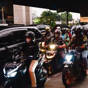 6月27日傍晚,在印度尼西亞雅加達東區的芝皮南切姆佩達克,人們在雅加達-萬(wàn)隆出城方向的道路上騎行。