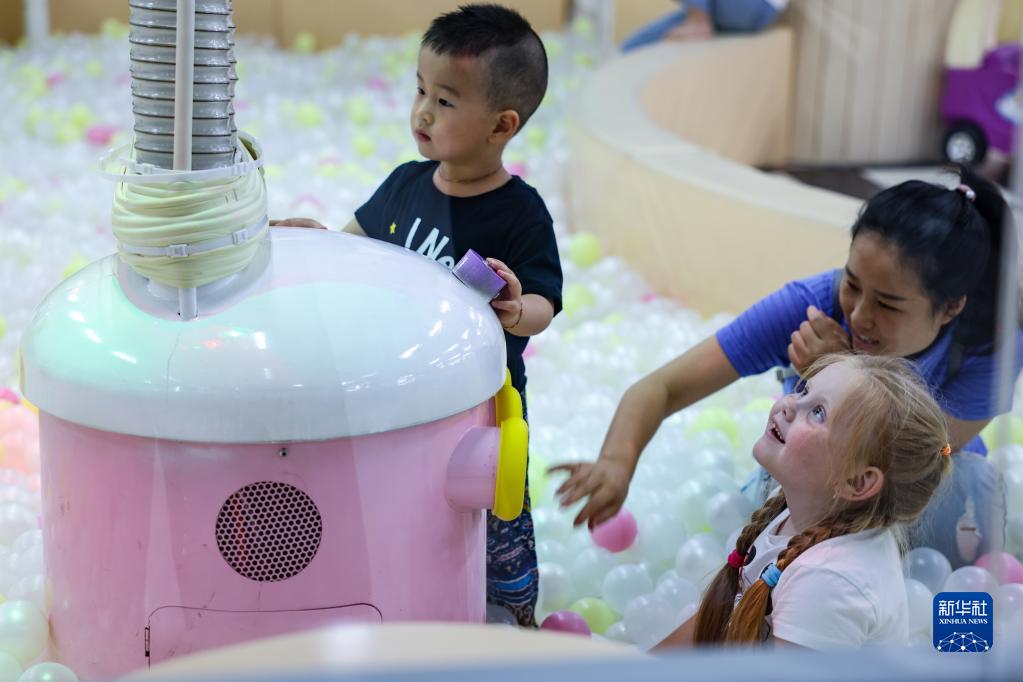 6月27日,小朋友在琿春市一家商場(chǎng)內的兒童樂(lè )園玩耍。