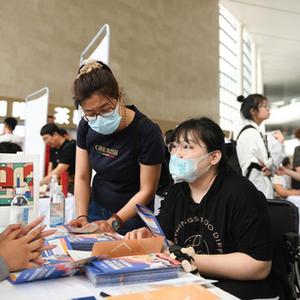 6月28日,求職者在招聘會(huì )上咨詢(xún)崗位信息。