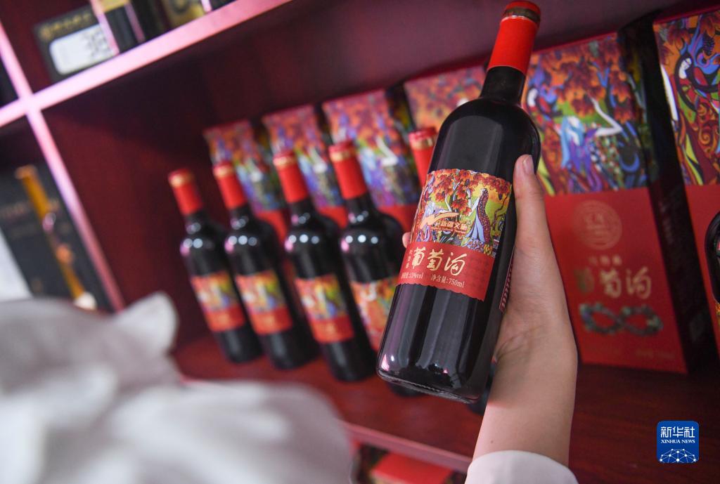游客在位于吐魯番市的葡萄溝景區選購葡萄酒(6月26日攝)。