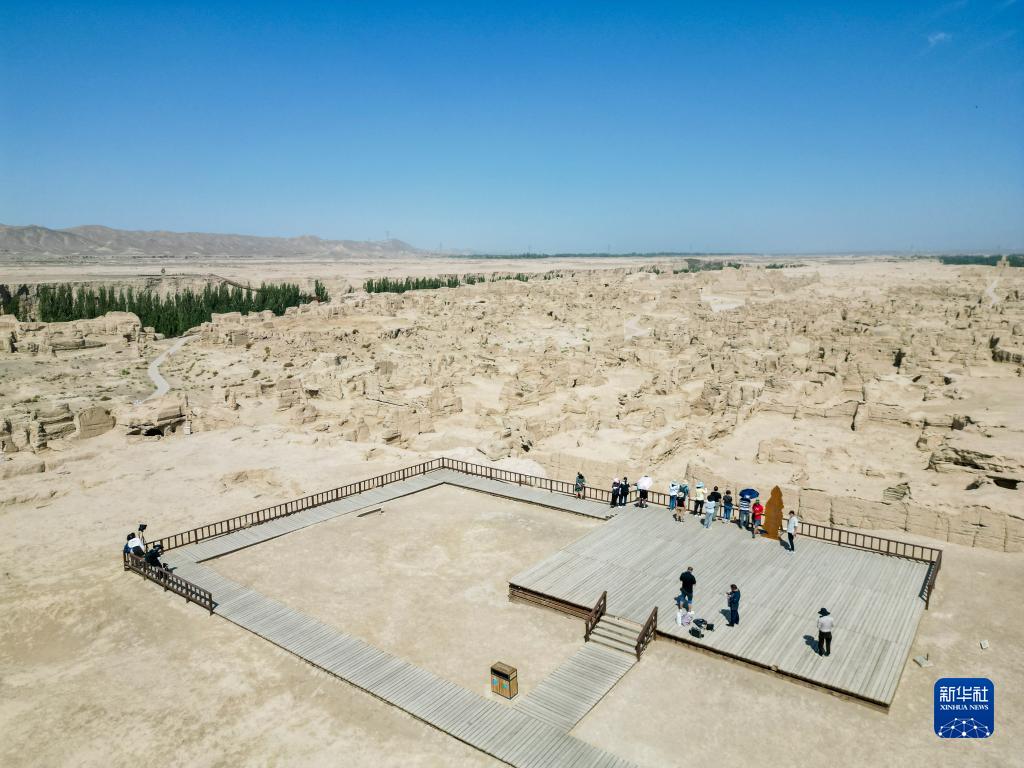 游客在位于吐魯番市的交河故城景區參觀(guān)(6月25日攝,無(wú)人機照片)。