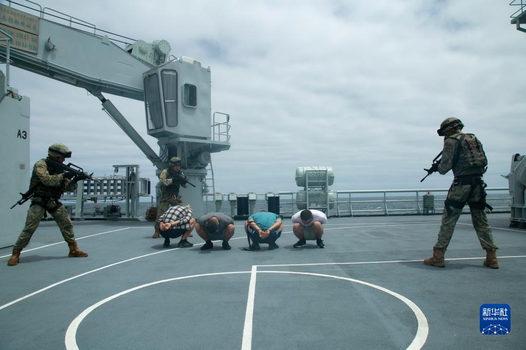 6月26日,中國海軍第43批護航編隊與科特迪瓦海軍在科近海進(jìn)行聯(lián)合演練。這是特戰隊員控制“海盜”。