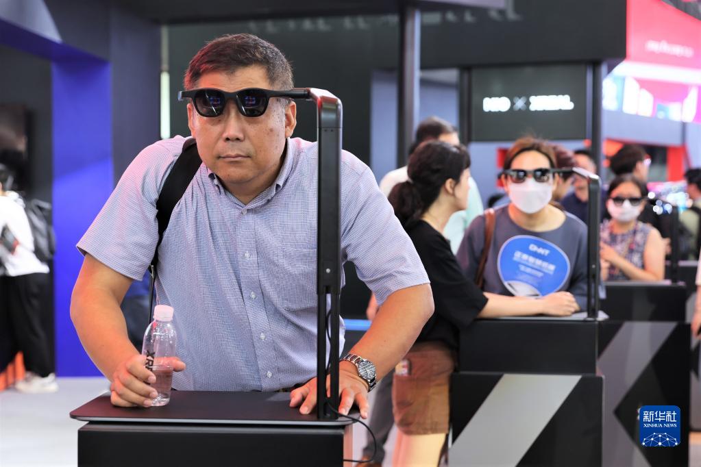 6月28日,人們在XREAL展臺試戴AR眼鏡。