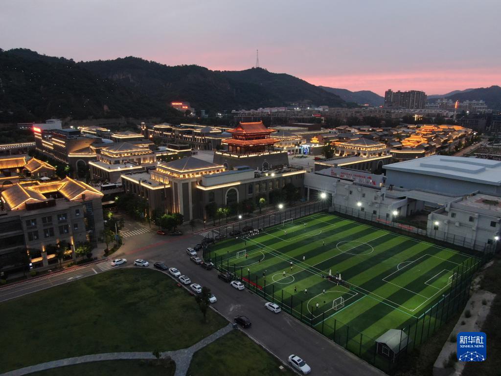 6月28日,市民在延安市金延安文化旅游產(chǎn)業(yè)園進(jìn)行體育運動(dòng)(無(wú)人機照片)。