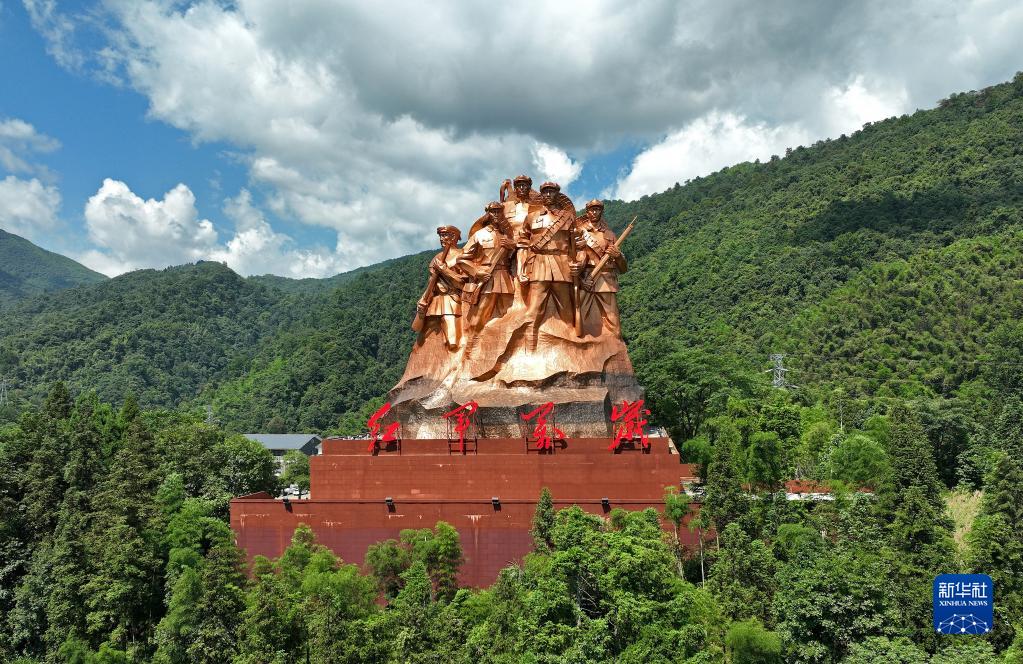 6月28日拍攝的井岡山“紅軍萬(wàn)歲”組雕(無(wú)人機照片)。