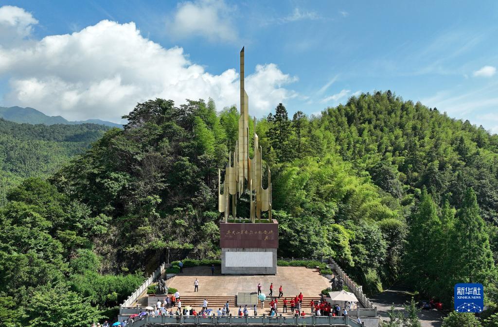 6月28日拍攝的井岡山革命烈士紀念碑(無(wú)人機照片)。