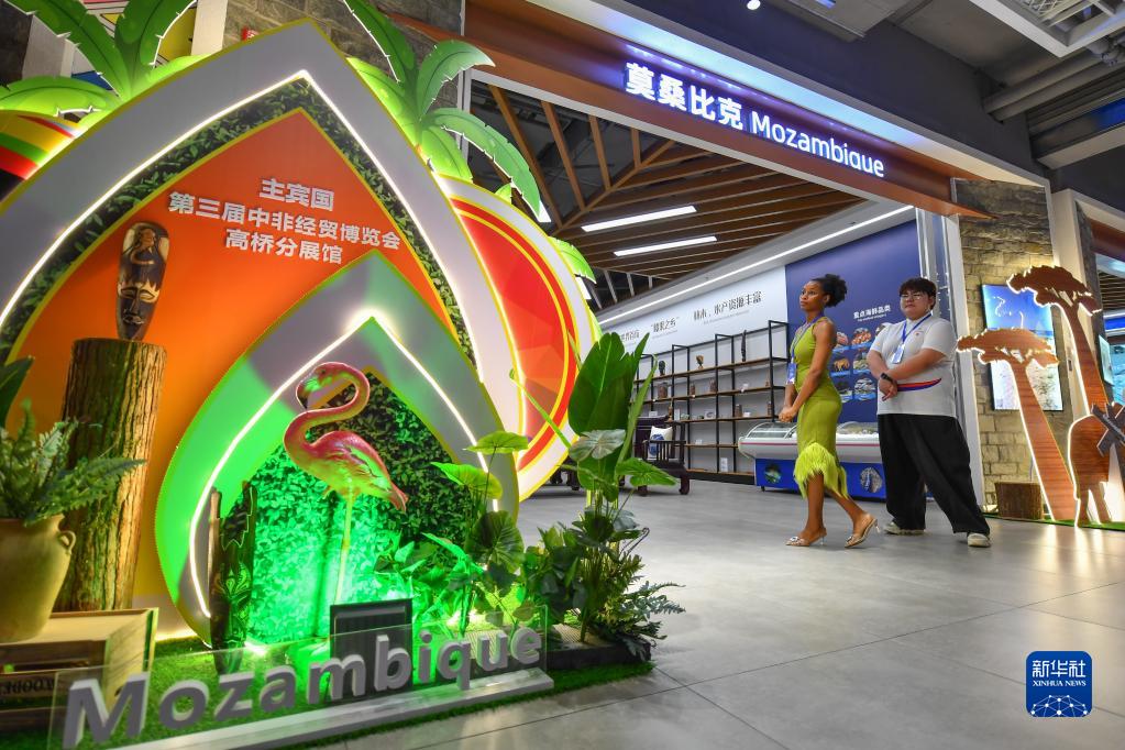 這是6月29日在中非經(jīng)貿合作促進(jìn)創(chuàng )新示范園(湖南高橋大市場(chǎng))拍攝的莫桑比克國家館。