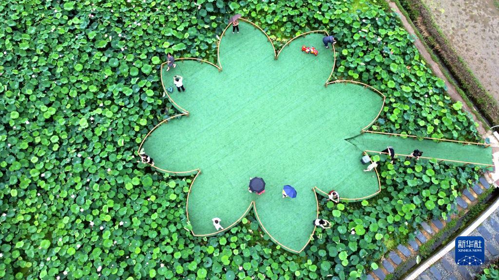 6月27日拍攝的浙江省余姚市梁弄鎮汪巷村荷塘(無(wú)人機照片)。
