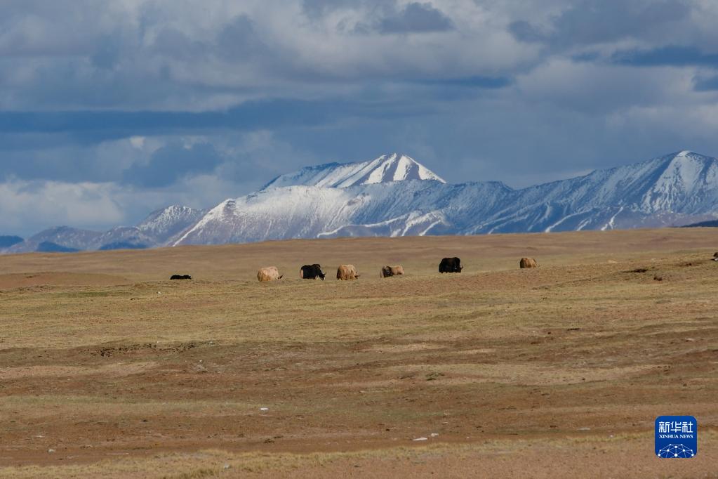 6月14日,在長(cháng)江源地區的沱沱河附近,一群牦牛在覓食。新華社記者張鋮攝