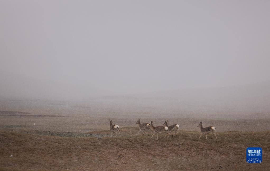 6月16日,在長(cháng)江源地區的楚瑪爾河附近,幾只藏原羚在嬉戲。新華社記者金立旺攝