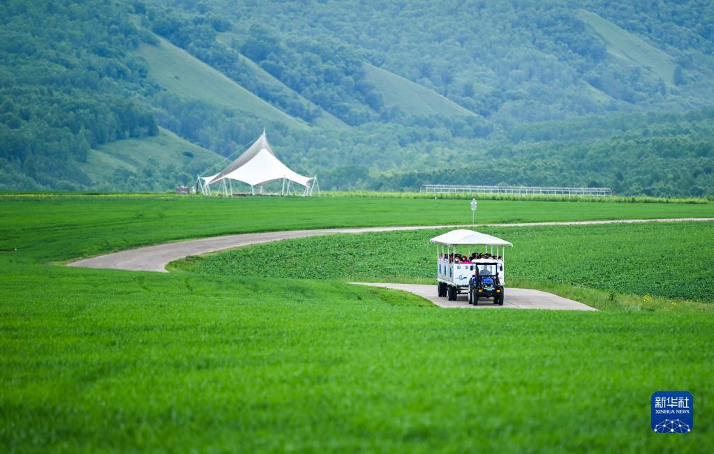 6月28日,游客在額爾古納市蒙兀室韋蘇木境內的奧洛契莊園乘車(chē)游覽。