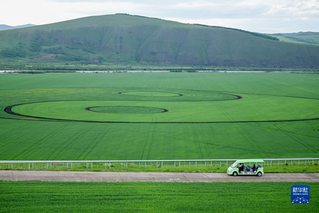 6月28日,游客在額爾古納市蒙兀室韋蘇木境內的奧洛契莊園乘車(chē)游覽。