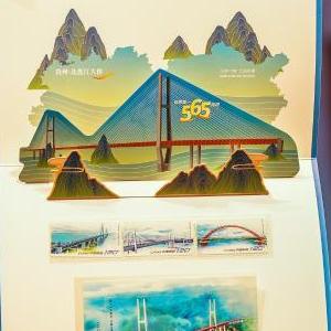 當日,《現代橋梁建設》特種郵票首發(fā)儀式在貴州省博物館舉行。此次發(fā)行的特種郵票一套3枚,小型張1枚,郵票圖案名稱(chēng)為滬蘇通長(cháng)江公鐵大橋、甌江北口大橋、平南三橋,小型張圖案名稱(chēng)為北盤(pán)江第一橋。