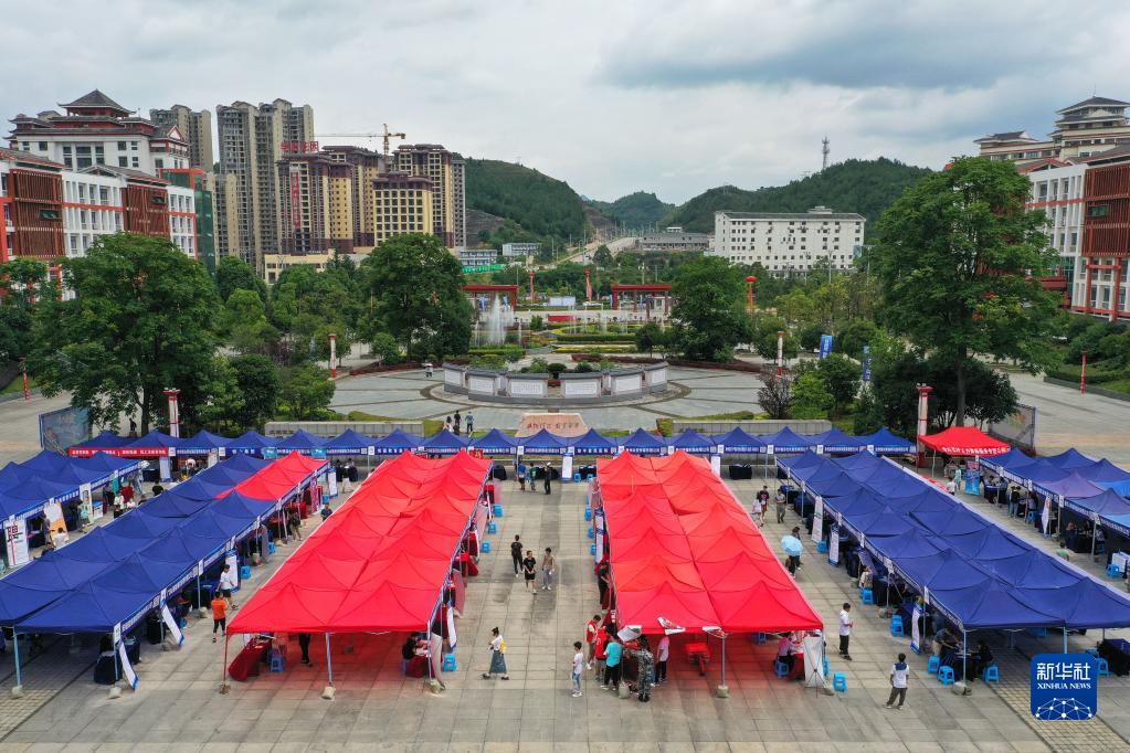 這是6月30日拍攝的貴州省黔東南州2023年“職引黔程·點(diǎn)亮未來(lái)”高校畢業(yè)生大型招聘會(huì )現場(chǎng)(無(wú)人機照片)。