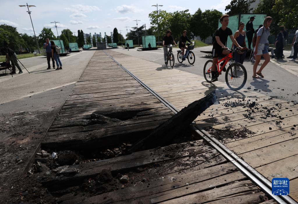 6月30日,在法國上塞納省楠泰爾市,一處公園的地面被示威者破壞。