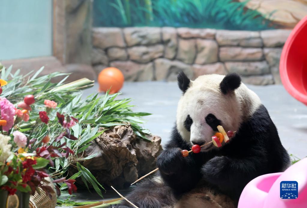 入夏以來(lái),在位于青海省西寧市的西寧熊貓館,飼養員用胡蘿卜、蘋(píng)果、番茄、竹子等食材,為館里的4只大熊貓進(jìn)行食物豐容,調整飲食結構。