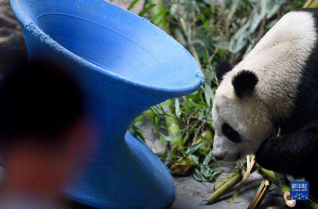 入夏以來(lái),在位于青海省西寧市的西寧熊貓館,飼養員用胡蘿卜、蘋(píng)果、番茄、竹子等食材,為館里的4只大熊貓進(jìn)行食物豐容,調整飲食結構。
