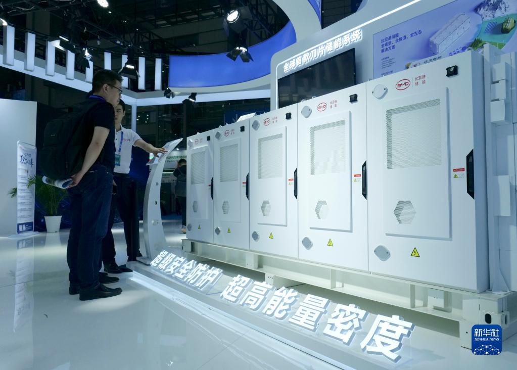 6月30日,觀(guān)眾在展會(huì )上了解比亞迪推出的刀片儲能系統。