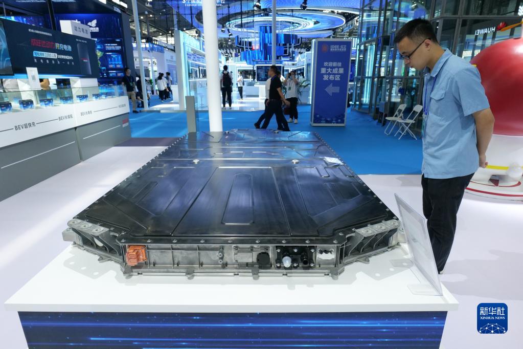 6月30日,觀(guān)眾在展會(huì )上觀(guān)看展出的液冷電池包。