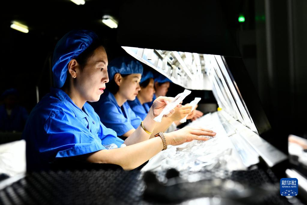 6月29日,在日照高新技術(shù)產(chǎn)業(yè)開(kāi)發(fā)區日照華仁藥業(yè)質(zhì)檢車(chē)間,工作人員質(zhì)檢注射液。