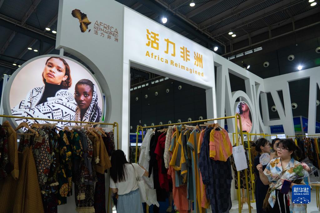 7月1日,在第三屆中國-非洲經(jīng)貿博覽會(huì )上,人們選購非洲服裝。